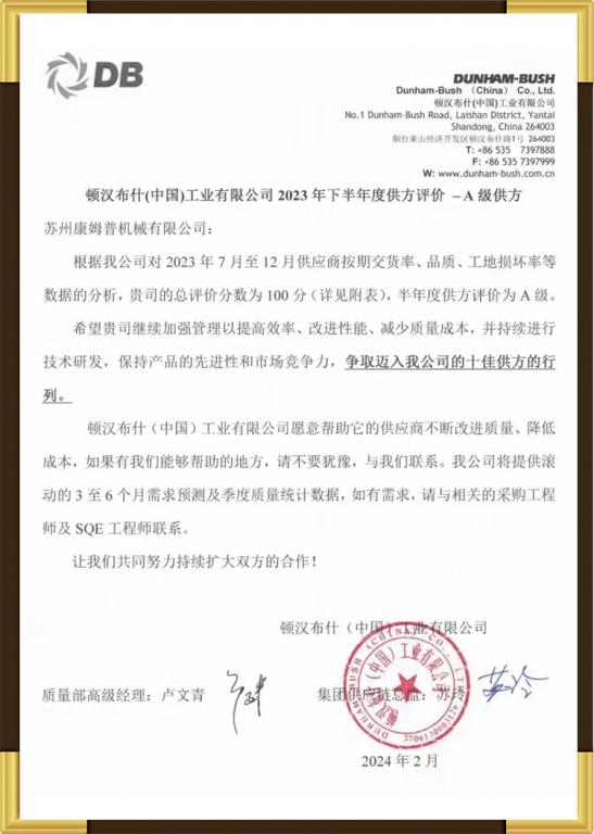 顿汉布什优秀供应商